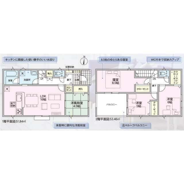 | 設備 | カウンターキッチン システムキッチン 床下収納 モニタ付インターホン ディンプルキー 防犯カメラ 複層ガラス 浄水器 IHクッキングヒーター 3口以上コンロ 浴室暖房 浴室乾燥機 側溝 ルーフバルコニー 人感センサー付照明 火災警報器(報知機) 温水洗浄便座 トイレ2ヶ所 | ||